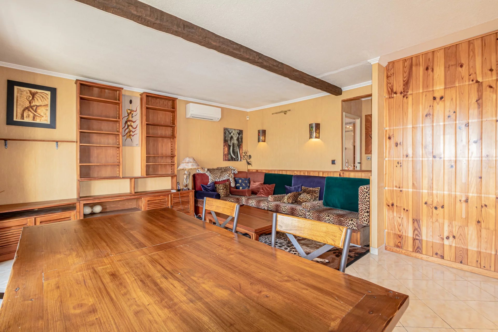 Sur les hauteurs de Saint-laurent-du-Var, Appartement d'angle 5 pièces de 135m² avec un double séjour/salon de 45m² offrant une vue panoramique et mer. Il y a une cuisine aménagée ouverte, une terrasse/véranda de 16m² et une seconde terrasse sud, 4 chambres avec placard dont la chambre principale avec bureau, douches, bains, 2 toilettes. Prestations: climatisé, cave et garage. Résidence de 334 lots, charges: 240€/mois inclus l'eau froide. Sans vis-à-vis, en position dominante, lumineux, vue mer, ville et verdure.